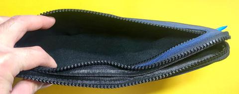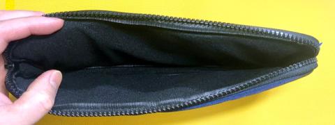 シンプルポーチは外殻が軽量かつ衝撃に強いEVA製でガッチリ保護仕様、かつ上下にガバッと開くタイプのケースでした。