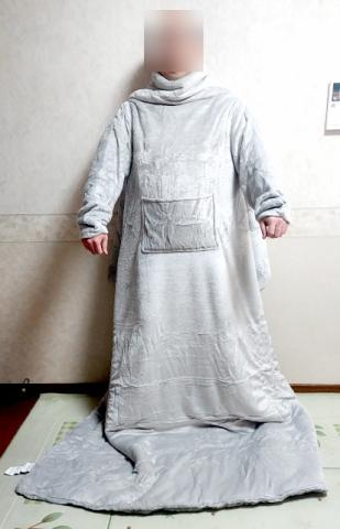 と言っても、毛布の袖に腕を通すだけ。