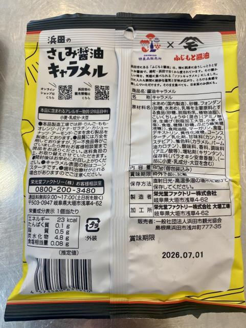先日は ほういちの耳まんぢう と共に 浜田のさしみ醤油キャラメルを頂戴しました
