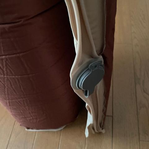 畳む時は中の弁をオレンジ色が見るようにキッチリ回しておくとマット内の空気は外に出てマット内に空気が入らないようになる(オレンジの薄いゴムのような弁なので単純な構造です)