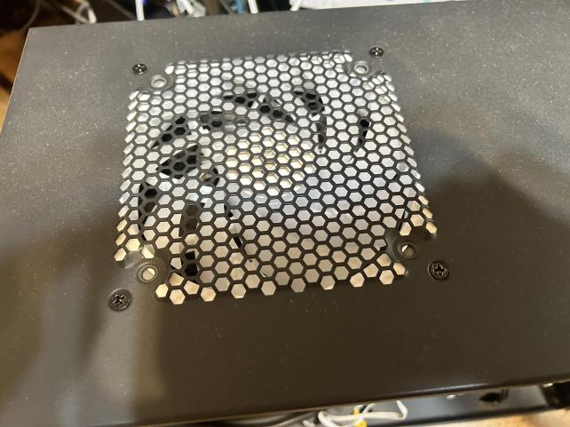 CPUクーラーの真上に設置したので高負荷時に効いてくると思いたい、高負荷なんて滅多にかけないけど仮想マシン動かしてる時はCPU使用率上がってるときがあるから良いかもしれない。