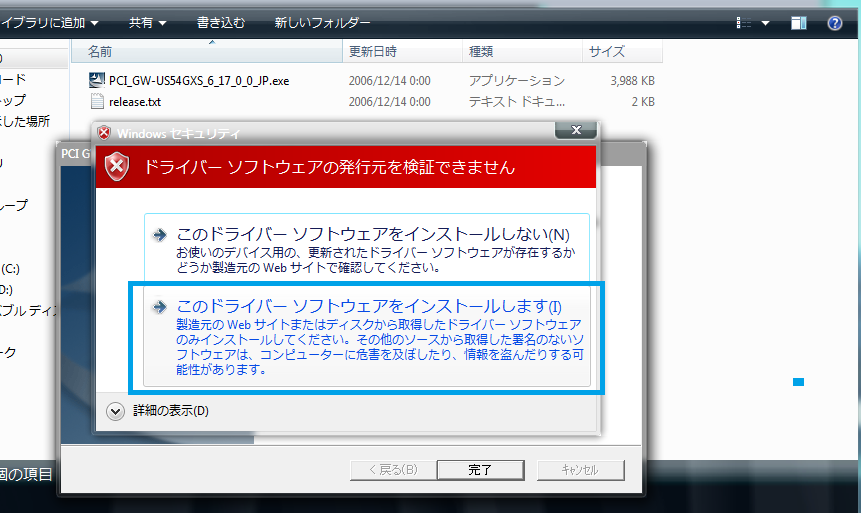 (正確にはWindowsにはデジタル著名されたドライバーが必要ですってやつだけですがw)