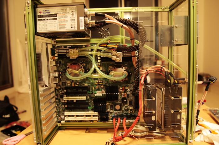 まだまだですが2CPU(8Core!!)で静穏、水冷 マザーはExtended ATX なのに ATXケースに