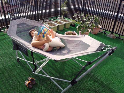大きなプールやハンモックを設置してのベランピング!