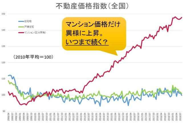 国土交通省の不動産価格指数というデータをグラフ化した資料がありました。