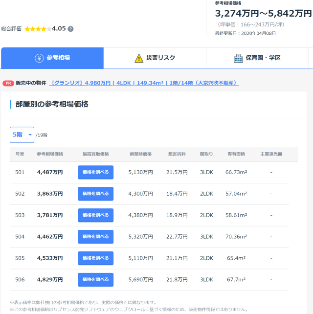 それよりも、想定賃料が出ているのが便利なWebサイトだと思った。