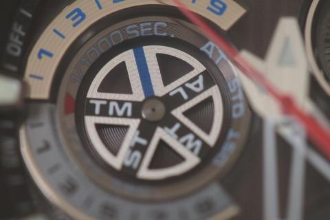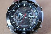 対して、標準ズームは意外に寄れ(最短撮影距離0.25m)、Edificeのベゼル(直径約43mm)が上下いっぱいに写っている。