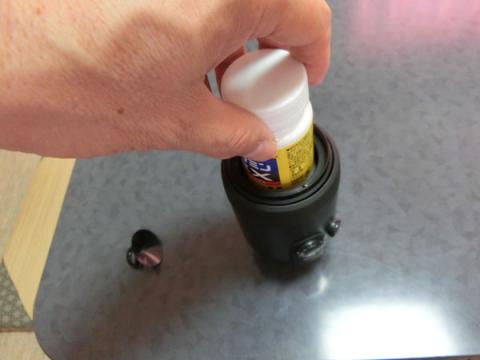 そこで同じ径の空き容器をテープの上から押しつけながら回します。