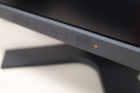 左から、入力切り替え、自動調整、メニューの表示・決定、移動(上・下・左・右)、電源といったボタンが並んでいます。