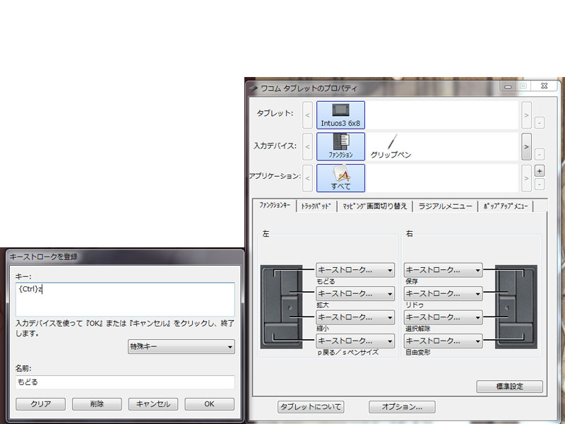 ワコムタブレットのプロパティ→入力デバイス→ファンクション→ファンクションキーのタブ