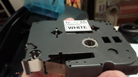 購入した本体には使いかけの12㎜白テープ1本、新品24㎜白テープ1本、新品コートなし12㎜テープも入ってました。また電池式の角トリマーも付属しており、どれも動作に問題はなさそうです。