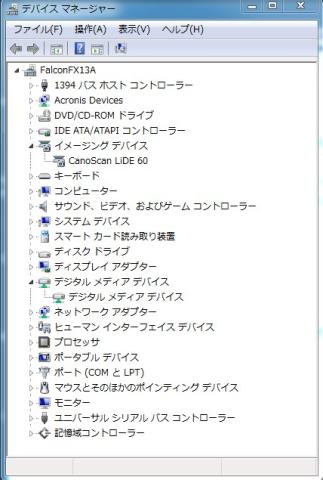 デバイスマネージャーでイメージングデバイスにLIDE60があるのを確認します