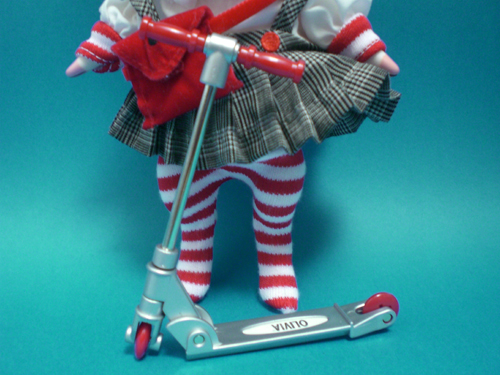 キックボードはプラスチック製なのですが、ちゃんとコロも廻りますし、ハンドルも切れるんですよー。