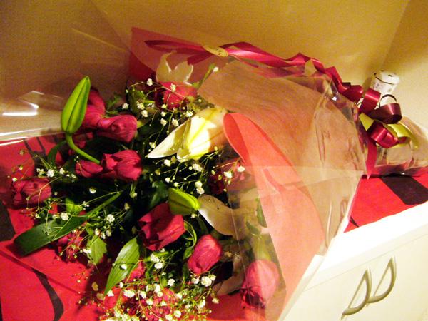 大きな花束を抱えて深夜のタクシーに乗り込むと、