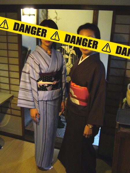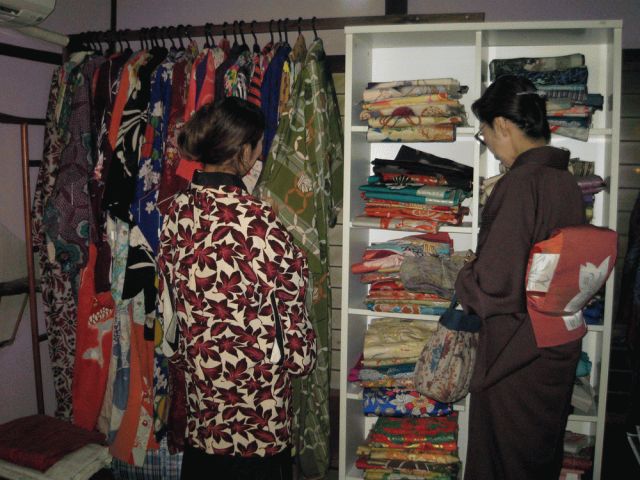 画像2:アンティークの着物や帯を物色する先輩と母。