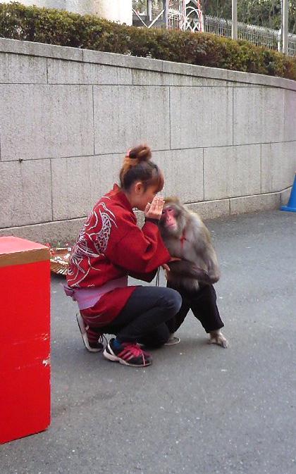 サル漫才の人だかりの後ろで子供の声がして振り返ると