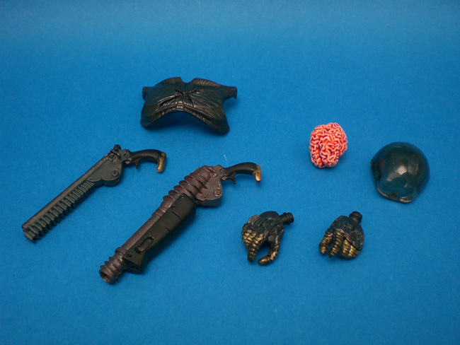 確か、固定ポーズのハカイダーに付属しているプロフェッサーギルの脳と入れ替えたり、キカイダーに付属の良心回路と入れ替えたりできたと記憶しています。