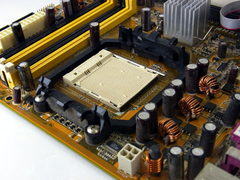 GeForceの名を冠するGeForce6150グラフィックは確かWindowsAeroも動かしていた気がする(うろ覚え)。後々登場する780G等と比べるとチップセットヒートシンクが貧弱に見えるが、9500GT導入までの間グラフィックフル稼働で故障しなかったのだからまあ大丈夫なんだろう。