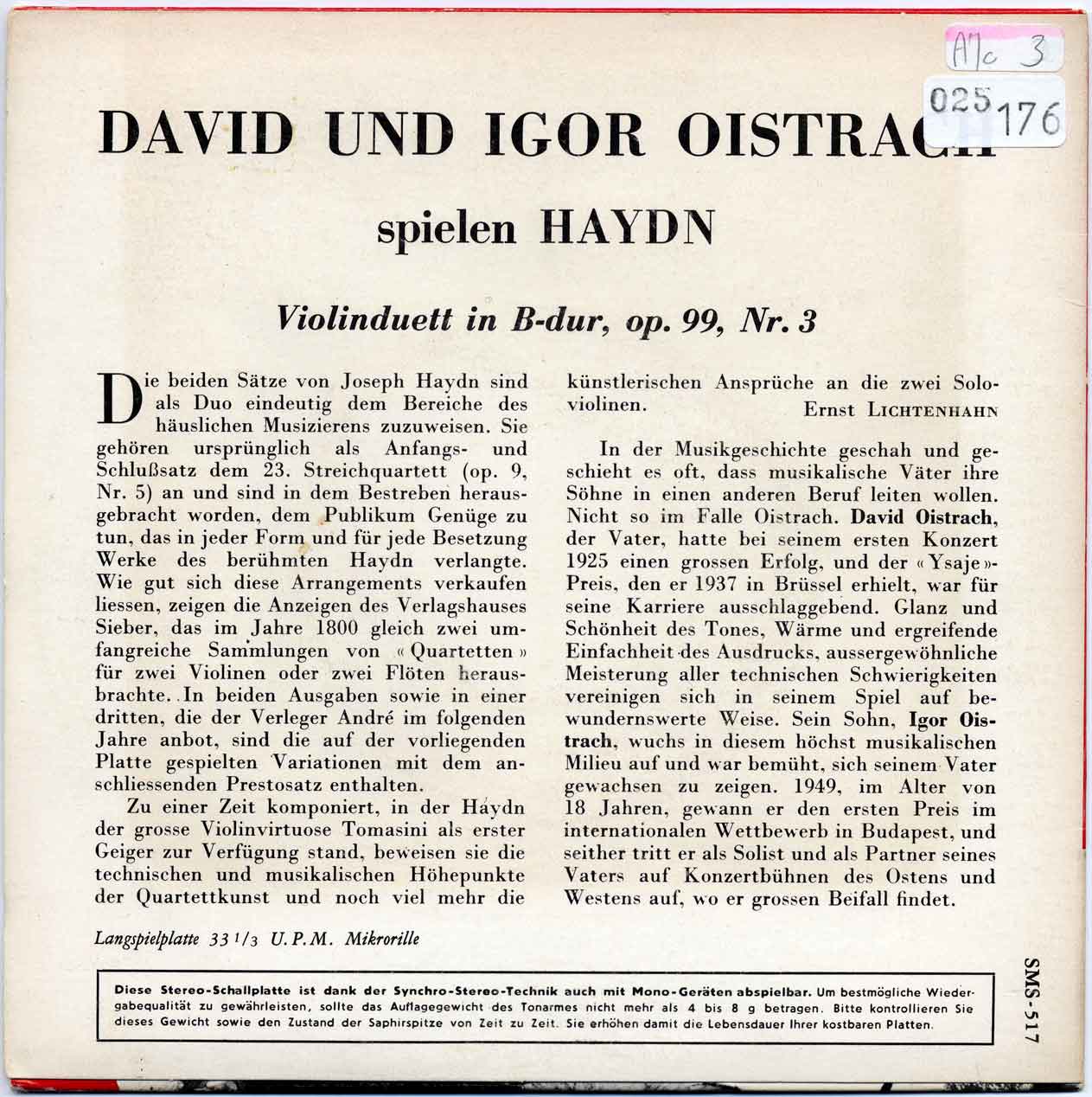オイストラフ親子ということで、技巧的な曲でも流麗な響きを聴かせてくれるのではないかと推察いたします。