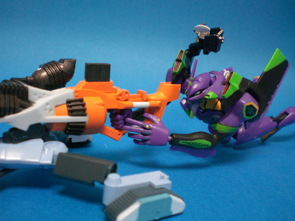 同シリーズの零号機にはシールドが付属していますので、両方揃えるとヤシマ作戦ごっこも再現可能です。