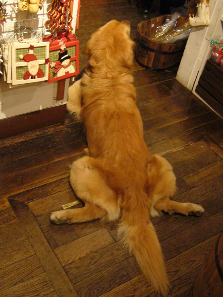 おとなしい〜レトリバーが店内でくつろいでました。