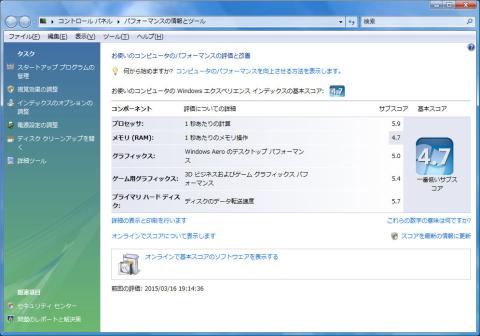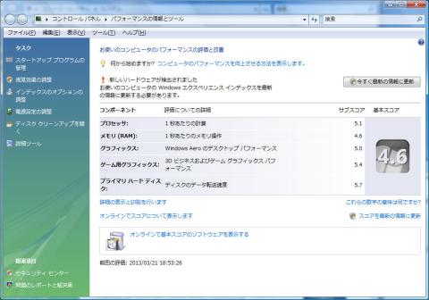 装着前のインデックス(WindowsVISTA) CPU:5.1