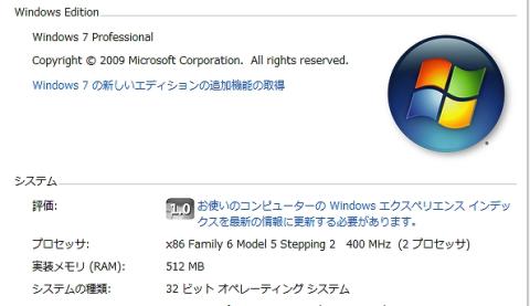 以前Penii 350MHz×2でVistaを入れた時は重すぎてまともに動かなかったのですが軽いと言われているWin7なら行けるんじゃね?ということです。