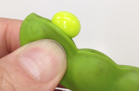 無限エダマメというのは、茹でた枝豆をつまんだ時にプニッとマメが出てくる感触をリアルに再現した何度でも遊べる玩具で、2008年頃に流行ったものです。