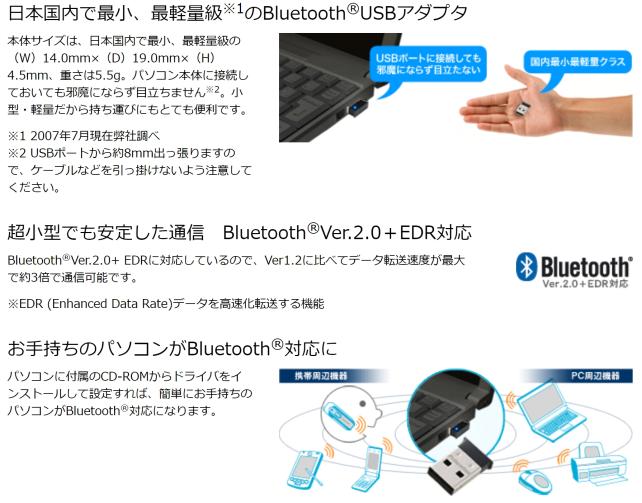 ノートPCに挿しても出っ張らないという、当時は最小のBluetoothアダプタでした。