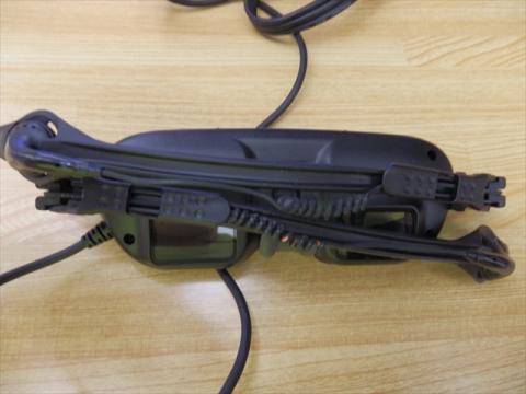 画像は、装着の前に見える景色を狙ったものですので、手前がボケてしまってよく分からないかもしれないですが、末端部分に引っ掛ける様にイヤーパッド部分を収納しています。
