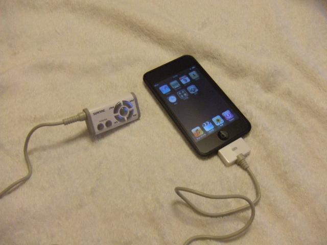 不満なのは、このリモコンにヘッドフォン端子が付いていないので、Touchを中心に2本ケーブルが出てしまっていること。あと、デザインが…Touchがスタイリッシュなだけに(T_T)。あと、出来りゃ、白じゃなくて黒が欲しかったなぁ。