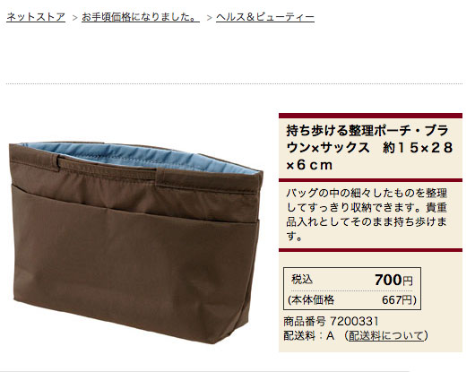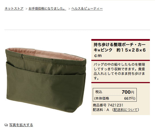 type P用のバッグインバッグとして使いたい無印良品「持ち歩ける整理ポーチ」