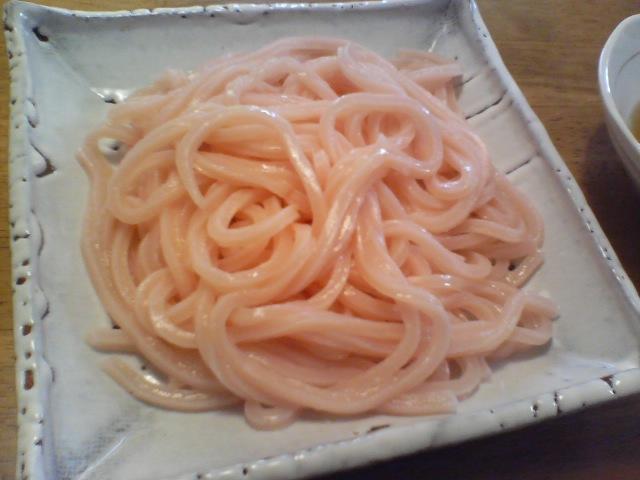 綺麗な桜色したうどんです。