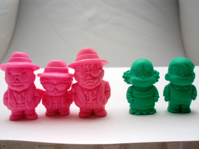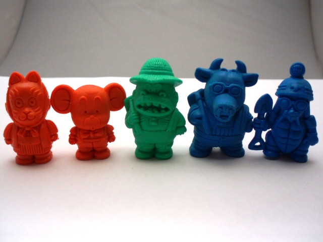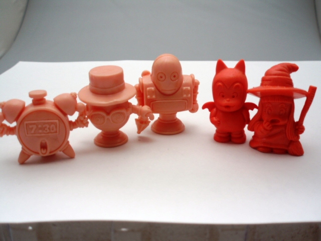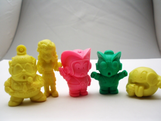 ちなみに、ガチャガチャに混入されていたものが比較的市場に出てきますが、セット(んちゃ!バッグ)にしか入ってなかったものがあるようで、比較的数が少ないのはそのせいかと思われます。
