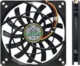 薄いケースファンです。 1000rpm 14.5dBA 15.23CFM(25.891m^3/h) DC12V 0.09A ケーブル長 30cm...