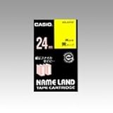 カシオネームランドのテープカートリッジです。 幅が24mmあるので目立ちます。黄色地に黒文字ですよ。