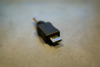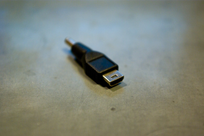 給電時は、USB側から、充電時は、miniUSB側から接続します。