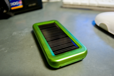繰り返し使用できる、リチウムポリマーバッテリ内蔵の充電器。自らを充電する方法は、USB接続のPCやACアダプタ。それにこいつはソーラチャージ...