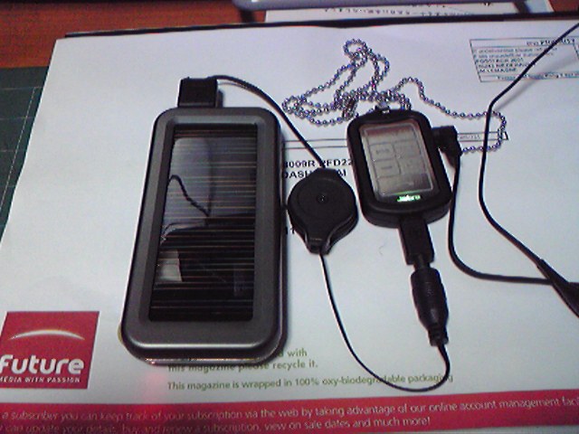 低消費電力のガジェットに使える補助バッテリーとして、太陽電池からの給電ばかりでなくMiniUSB端子を使ってUSBホスト機器から、あるいはACアダプタからも給電して充電することができる。外に出るときは無尽蔵な太陽エネルギーを使って、屋内では他の電源を活用できる点がありがたい。