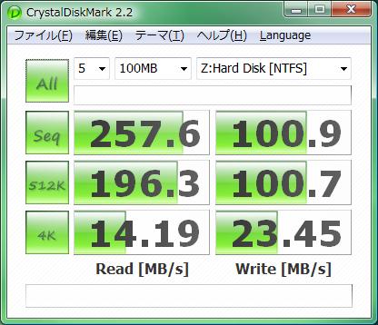 今回はベンチマークを2系統で計測しました。オンボードのSATAとPCIe接続のeSATA拡張カードです。動作モードは前者が3.0Gbpsで後者が 1.5Gbpsです。結果にその違いが素直に出ると予想していたのですが、「4k」の値が逆転しています。拡張カードにキャッシュなどはなかったと思うのですが、私には原因がわかりません。もしかしてこれが普通なのですか?自分の作業に没頭しており、他の方のベンチ結果を確認していないので何とも言えませんが、少し不思議です。もし、よくある測定ミスの原因などがありましたら、ぜひ教えてください。