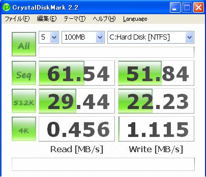 2枚目のSSDの結果ですが、読み込み速度が桁違いに高いのがわかりますね。