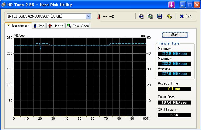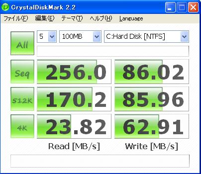 これがHDDだと放物線を描くように読み込み速度が落ちていきます。(HDDのプラッタの内側と外側では速度が違うから)