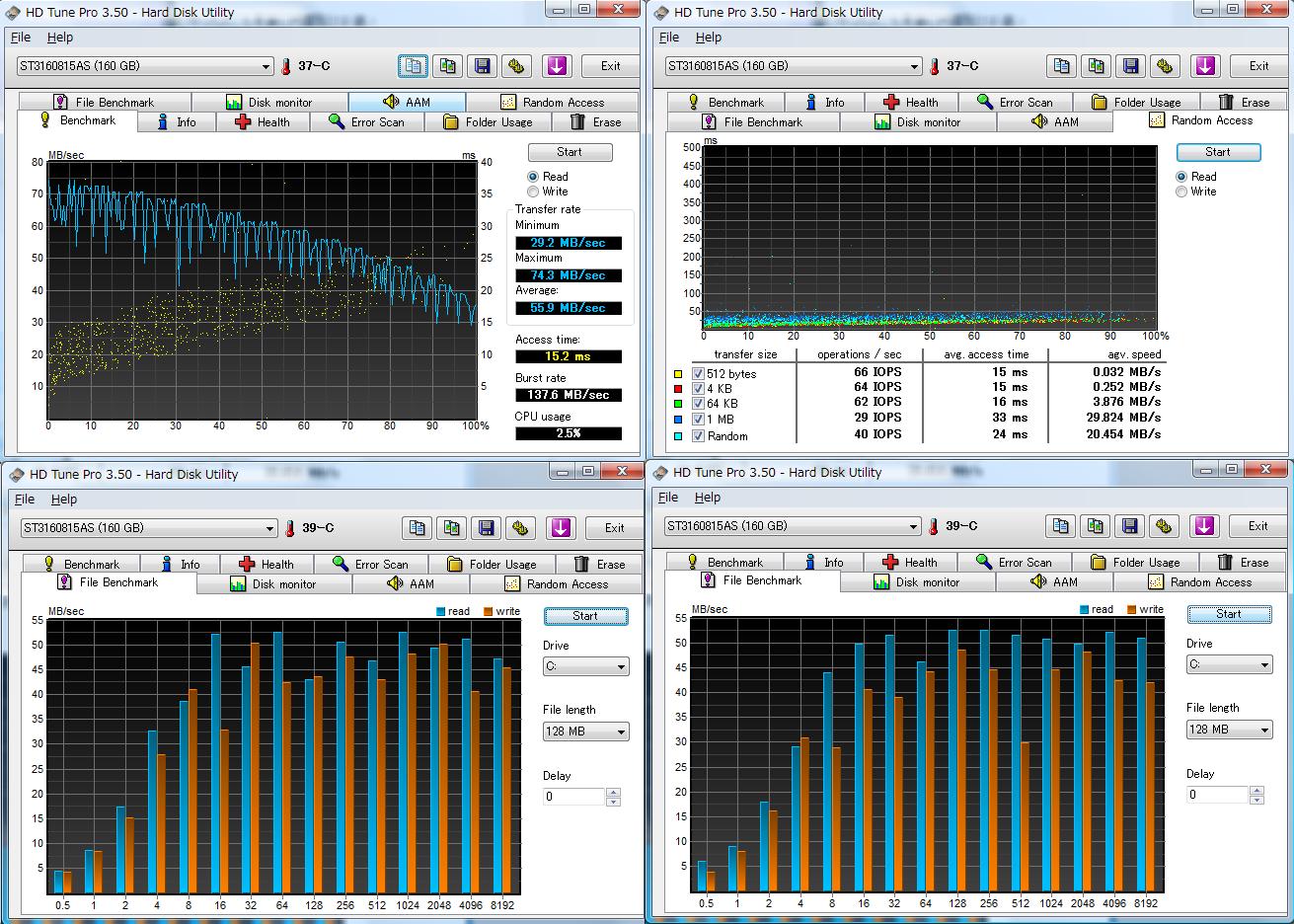 温度も160GBよりも低いので、1枚プラッタの威力がここに現れている。