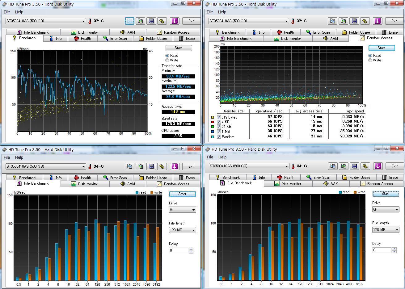 かなり酷使しているせいなのか、若干1世代前のHDD(Barracuda 7200.9)の速度を下回る結果に。