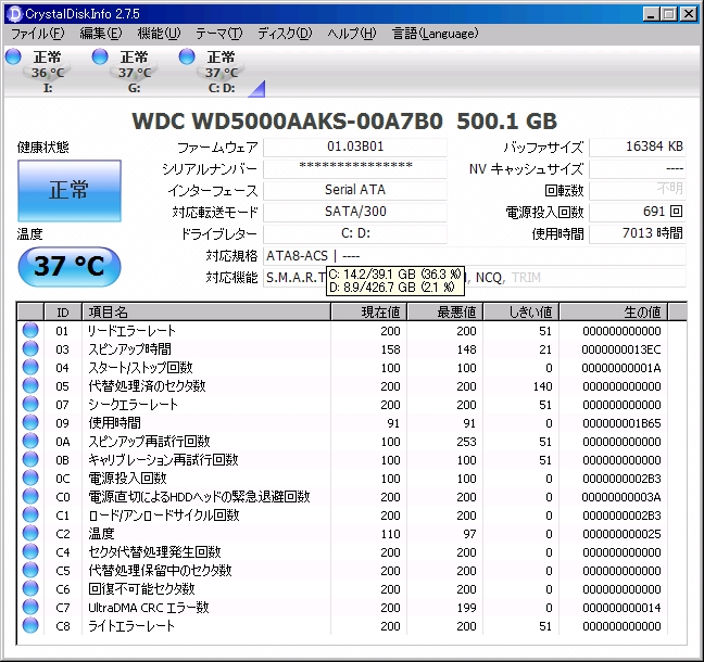 HDDはごらんの通りWD Caviar SE16 WD5000AAKS です