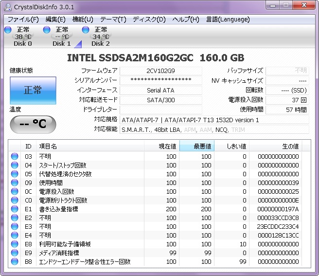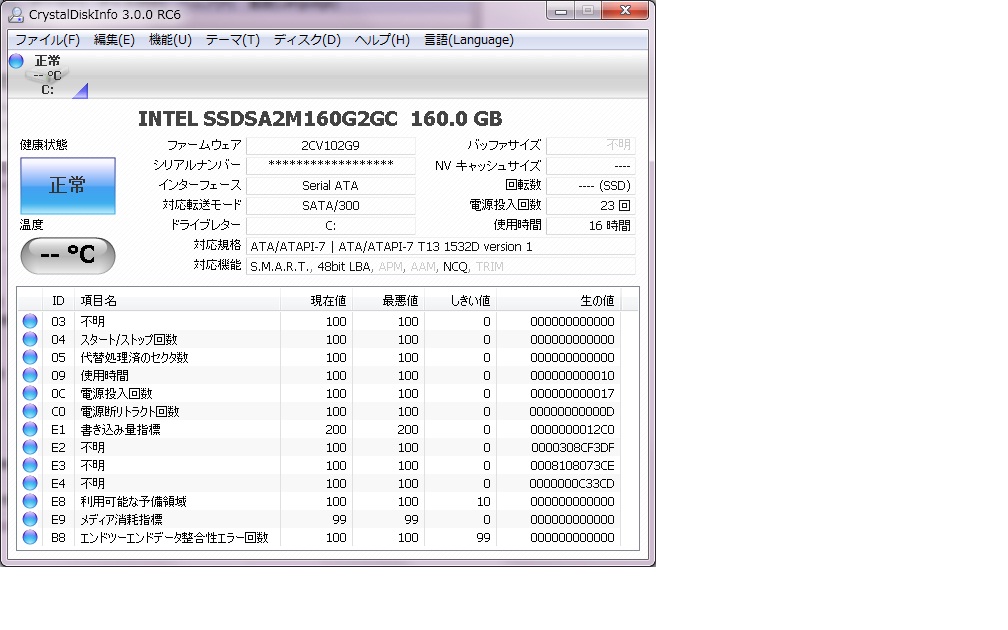 CrystalDiskInfoの使用回数/時間の方がかなり低いですね。羨ましいです・・
