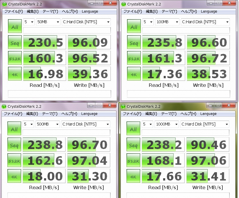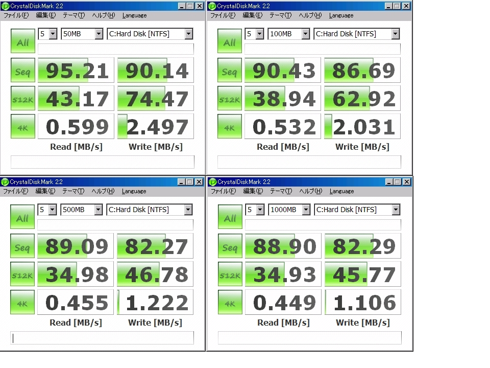 XPだから悪いのか、キャッシュ搭載のRAIDカードでも買えば何とかなるのか確認しないまま飽きて放置しちゃったので答えは分からないですが、比較するには良いデータかな?と勝手に思って載せておきます