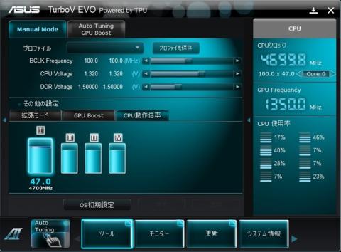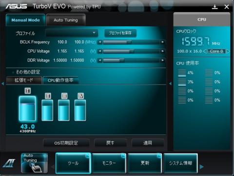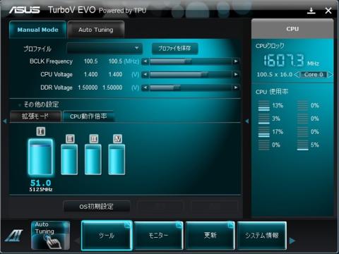 AI SUITEⅡ の TURBO V EVOでコアー電圧を1.4ボルトにしても変化なし