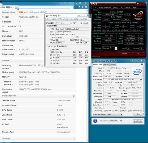 実行完遂しました。 詳しくは画像を見てください CORE TEMP結果を見るとCPU温度は最