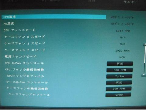 ターボモードにして「確定」にします。 マザーボードのケースFAN端子を使っていないと